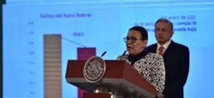 Al presentar el informe mensual en la materia, durante la conferencia matutina del presidente Andrés Manuel López Obrador, Rodríguez detalló que con el trabajo que hace todos los días el Gabinete de Seguridad va a la baja el índice delictivo. Indicó que la incidencia delictiva del fuero federal ha decrecido, ya que al inicio de esta administración se cometían 9 mil 62 delitos.
